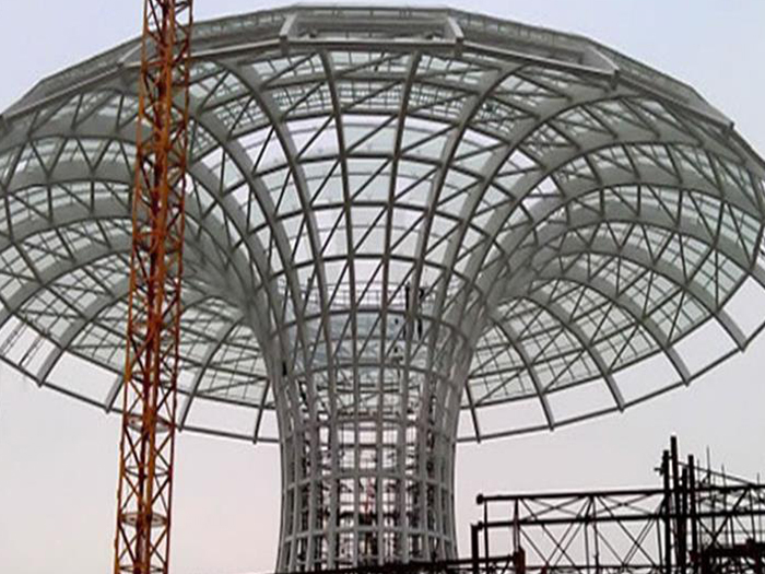 二、球形网架结构因其结构新颖,受力合理,自重轻、用钢量低等优点。如大型体育场馆球形临安螺栓球网架、公共场馆球形网架、电厂临安螺栓球网架、水泥工业球形网架、仓储物流球形网架、临安干煤棚工业球形网架、临安收费站临安加油站球形网架、展览中心、影剧院、商场、航站楼、候车厅、工厂临安车间、仓库、电视塔等球形螺栓球节点网架。国内球形网架结构主要分为:临安焊接球节点网架及螺栓球节点网架两种。螺栓球节点网架其构件工厂内加工量较大,现场安装便捷,适用于现场工期紧,临安施工条件、用电量受制约,网架形状复杂、临安杆件定位困难的异形结构。螺栓球节点球形网架系统基本由临安杆件、螺栓球、支撑支座等组成。按照节点形式可分为交叉临安桁架体系、四角锥体系、三角锥体系等。支撑方式多为固定支座支撑。对于大面积、大跨度及有特殊受力或伸缩要求的网架结构可采用橡胶支座、滑移支座、球铰支座等支撑形式,以满足结构自身的受力稳定、均衡,便于内力释放等设计要求。